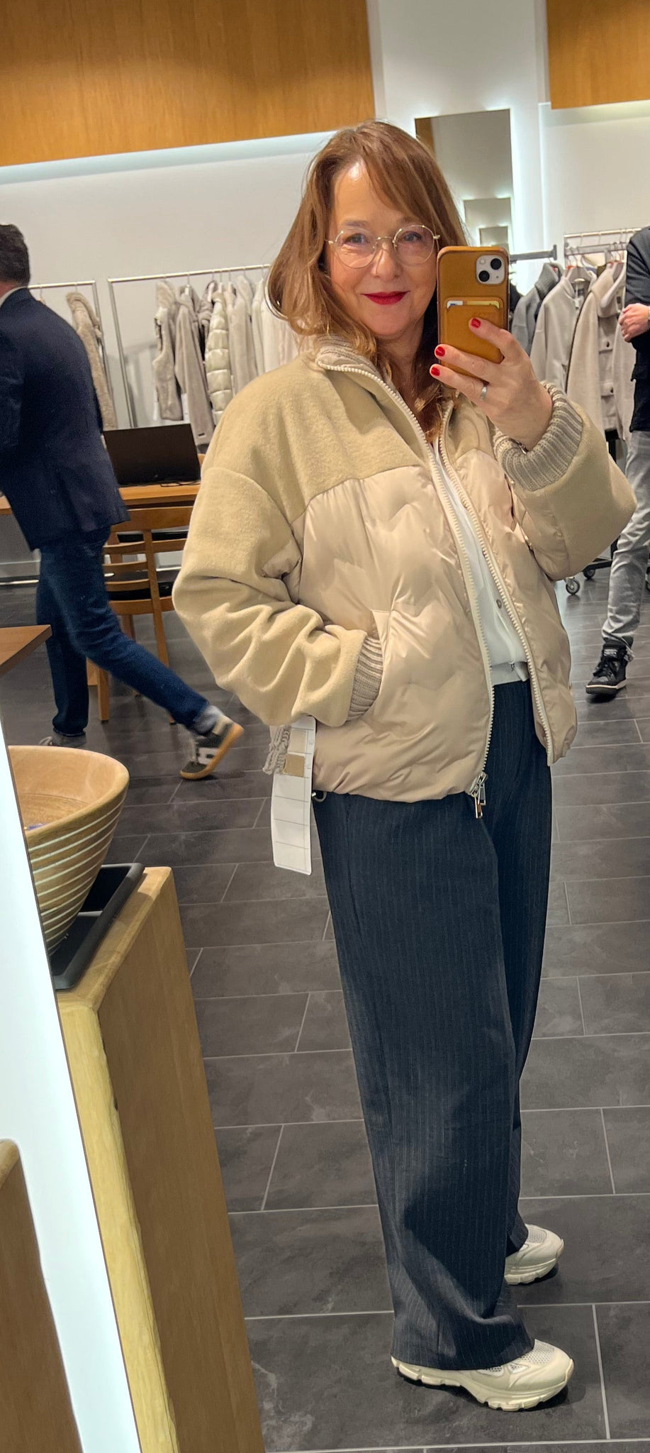 Dieser Blouson vereint eine gelungene Mischung aus Flanelloptik und eleganter Steppoptik, die für Wärme und angenehmen Tragekomfort sorgt. Das edle Beige ergänzt jedes Outfit stilvoll, während Stehkragen und Armabschlüsse in Strickoptik für raffinierte Details und einen optimalen Sitz sorgen. Der praktische Reißverschluss und die seitlichen Eingrifftaschen machen das Modell alltagstauglich und funktional. Ein vielseitiger Begleiter, der Komfort und modisches Design perfekt verbindet.