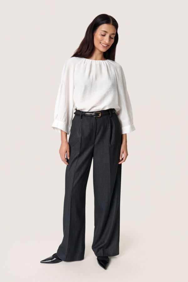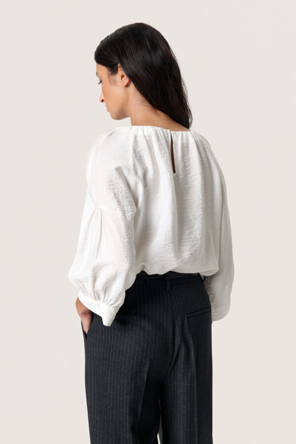 Diese edle Bluse Leodora besticht durch ihren luxuriösen, gebrochenen Weißton und die weite raffinierte Schnittform, die für einen eleganten Fall sorgt. Die 3/4-Arm-Ärmel und der raffende Effekt am Hals verleihen ihr eine feminine und edle Note – perfekt, um stilvoll und selbstbewusst aufzutreten.