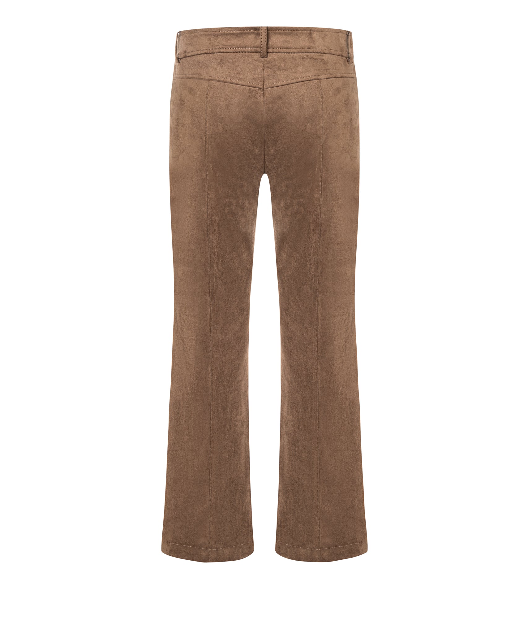 Die schmal geschnittene Hose in Mocca-Mouse-Farbe besticht durch ihre samtige Velourslederoptik und sorgt für einen edlen, angenehmen Tragekomfort. Mit ihrem leicht ausgestellten Bein und hübschen Trensendetails vereint sie Komfort und Stil mühelos – perfekt für einen anspruchsvollen Look, der zugleich bequem bleibt
