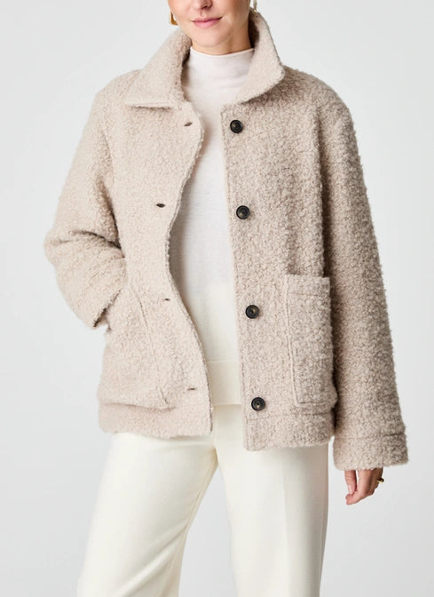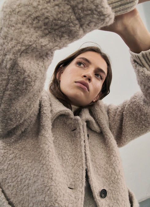 Mit ihrem weichen Teddymaterial und dem modernen Schnitt zieht diese Damenjacke alle Blicke auf sich. Die markante Knopfleiste und die aufgesetzten Taschen verleihen ihr besonderen Charakter und unterstreichen den modischen Anspruch. Der Modern Fit sorgt für eine zeitgemäße Silhouette und hohen Tragekomfort. Die Materialkombination aus Baumwolle und Polyester bietet eine angenehm griffige, strukturierte Haptik mit natürlichem Griff. Hochwertige Verarbeitung und das besondere Material machen die Jacke zu einem trendigen Begleiter mit individueller Ausstrahlung.