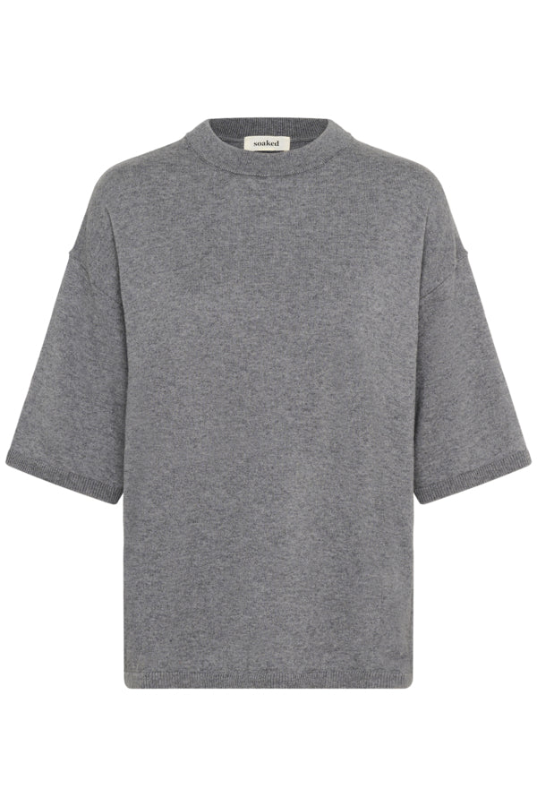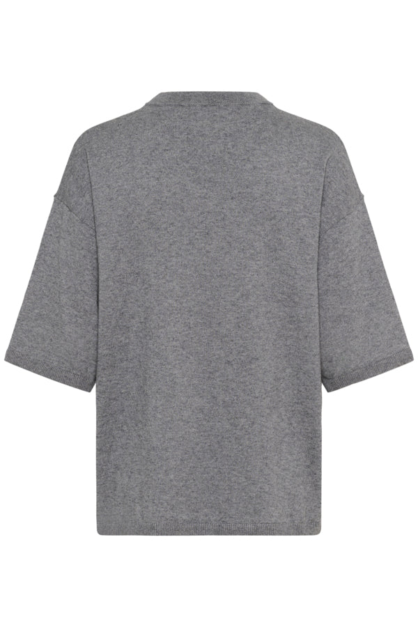 Dieser graue Strickpullover besticht durch seine lockere Passform und überschnittenen Schultern, die für einen entspannten, modernen Look sorgen. Die halblangen Ärmel und das weiche Material mit 20% Wolle bieten angenehmen Tragekomfort und Wärme, ideal für kühle Tage. Perfekt für einen lässigen Stil, der sich vielseitig kombinieren lässt. Das Model trägt Größe M.