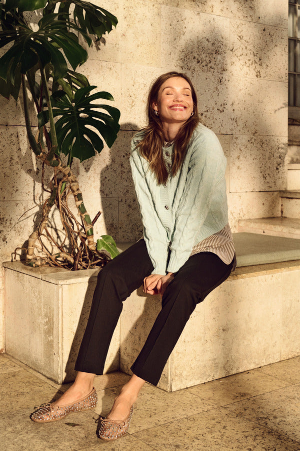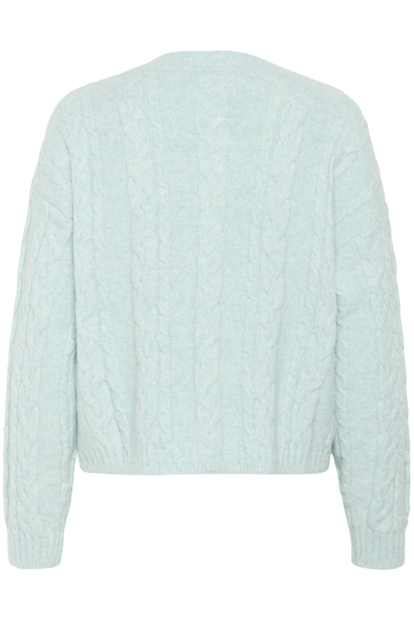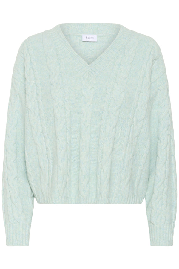 Der V-Pullover Moira von Saint Tropez verbindet eleganten V-Ausschnitt mit klassischem Zopfmuster, das für eine feine Struktur sorgt. In der erfrischenden Farbe Starlight Blue Melange bringt er neue Frische in Ihre Garderobe. Das weiche Material mit leichtem Wollanteil bietet angenehmen Tragekomfort, während der starke Rippenbund im V-Ausschnitt zusätzliche Modernität garantiert. Ein vielseitiges Kleidungsstück, das stilvoll und bequem zugleich ist.