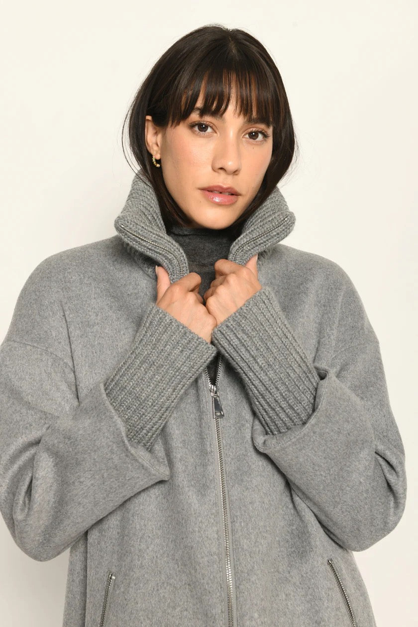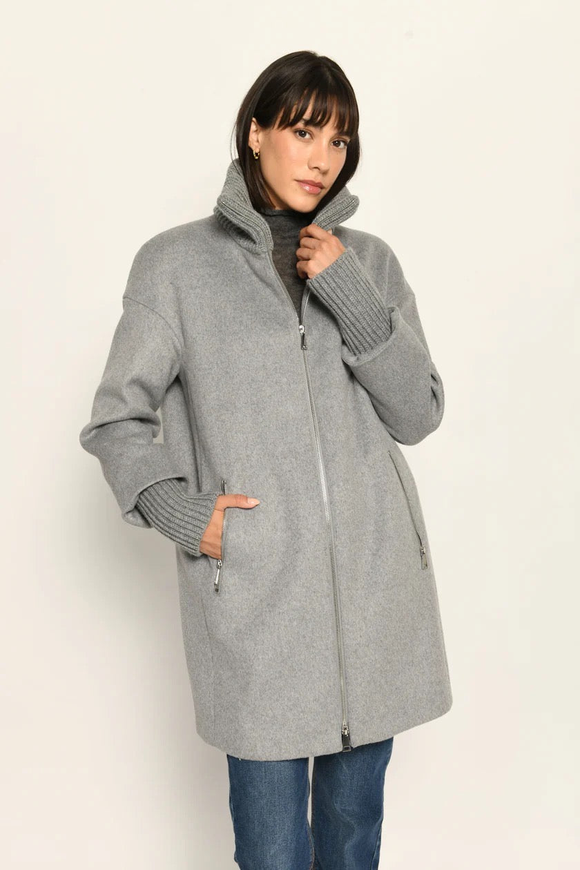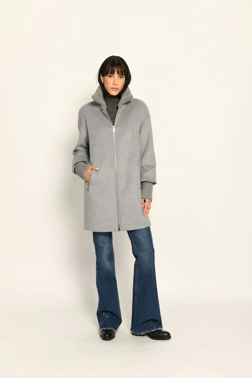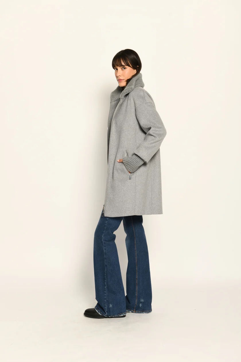 Ein Klassiker neu gedacht: Dieser Wollmantel in legerer Passform verbindet zeitlose Silhouette mit modernen Strickdetails – für ein stilvolles Wohlgefühl an kühlen Tagen.